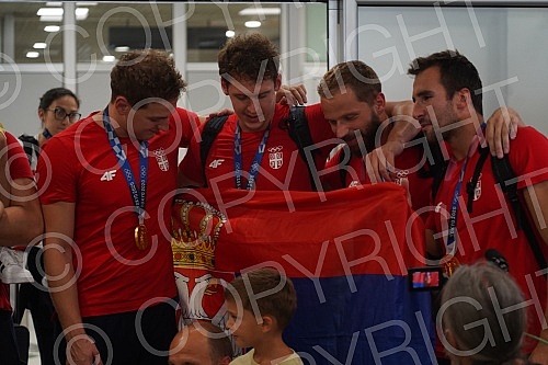 Karate player Jovana Prekovic, who won a gold medal and a gold water polo team of Serbia at the Olympic Games in Tokyo, arrived in Serbia and on that occasion a press conference was held at the Nikola Tesla Airport.