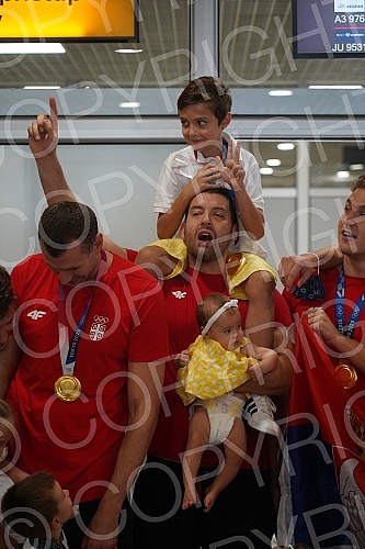 Karate player Jovana Prekovic, who won a gold medal and a gold water polo team of Serbia at the Olympic Games in Tokyo, arrived in Serbia and on that occasion a press conference was held at the Nikola Tesla Airport.