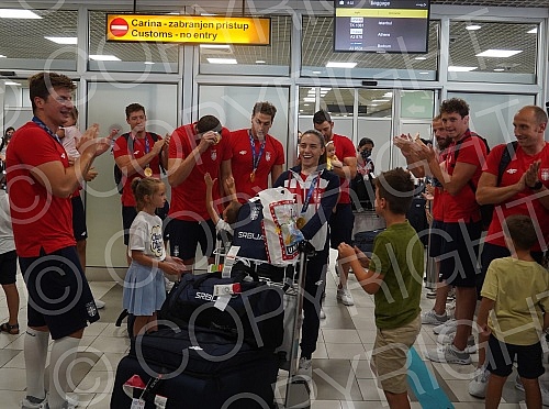 Karate player Jovana Prekovic, who won a gold medal and a gold water polo team of Serbia at the Olympic Games in Tokyo, arrived in Serbia and on that occasion a press conference was held at the Nikola Tesla Airport.