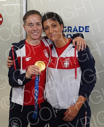 Karate player Jovana Prekovic, who won a gold medal and a gold water polo team of Serbia at the Olympic Games in Tokyo, arrived in Serbia and on that occasion a press conference was held at the Nikola Tesla Airport.