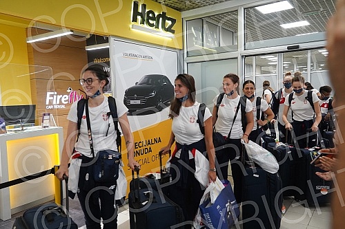 Karate player Jovana Prekovic, who won a gold medal and a gold water polo team of Serbia at the Olympic Games in Tokyo, arrived in Serbia and on that occasion a press conference was held at the Nikola Tesla Airport.