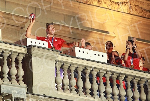On the plateau in front of the City Assembly of Belgrade, a reception was organized for the members of the Serbian Olympic team who won nine medals at the Games in Tokyo, and the Olympians addressed the audience from the balcony of the City Assembly.