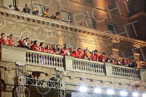 On the plateau in front of the City Assembly of Belgrade, a reception was organized for the members of the Serbian Olympic team who won nine medals at the Games in Tokyo, and the Olympians addressed the audience from the balcony of the City Assembly.
