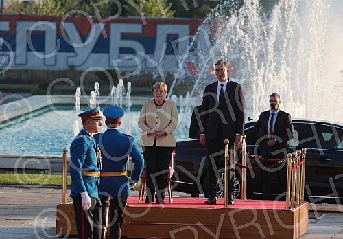 Festive reception of German Chancellor Angela Merkel in front of the Palace of Serbia. Svecani docek nemacke kancelarke Angela Merkel ispred Palate Srbija.