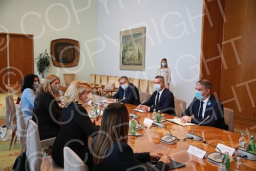 At the Palace of Serbia, Minister of Labor, Employment, Veterans' Affairs and Social Affairs Darija Kisic Tepavcevic met with Minister of Health and Social Welfare of the Republic of Srpska Alen Seranic.