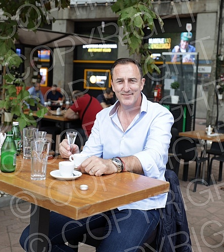 Singer Sergej Cetkovic with friends at coffee in Soljica Specialty Coffee and Drink Bar on Nikola Pasic Square.