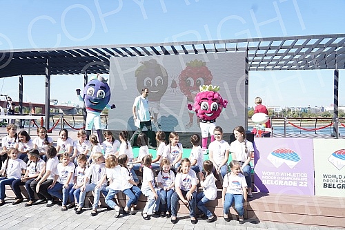 In front of the Gallery Shopping Center in Belgrade on the water, a promotion and presentation of the mascots of the World Athletics Championships was held in the Belgrade22 hall - Malina Li and Sljivan Iv.