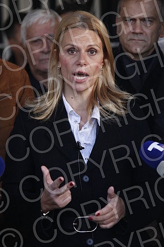 Press conference of the President of the Party of Freedom and Justice Dragan Djilas and the President of the Belgrade City Board of the Party of Freedom and Justice Mile Popovic in front of the National Assembly building (Kralja Milana 14) where the