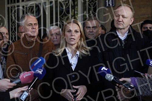 Press conference of the President of the Party of Freedom and Justice Dragan Djilas and the President of the Belgrade City Board of the Party of Freedom and Justice Mile Popovic in front of the National Assembly building (Kralja Milana 14) where the