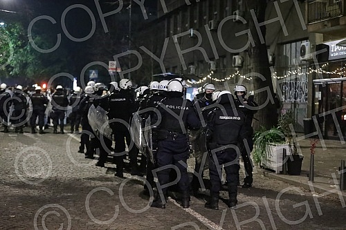 Police corrodon in Njegoseva Street, where Partizan fans gathered to prevent the "Mural Must Fall" rally.