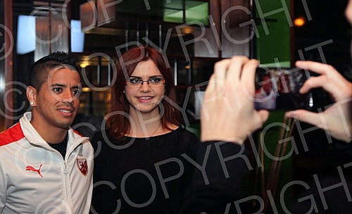 Druzenje prvotimaca Fudbalskog kluba Crvena zvezda Hugo Oliveira (Hugo Filipe Oliveira) i Luis Ibanjez (Luis Ezequiel Ibanez) sa navijacima u centru Beograda.