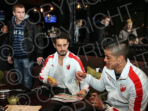 Druzenje prvotimaca Fudbalskog kluba Crvena zvezda Hugo Oliveira (Hugo Filipe Oliveira) i Luis Ibanjez (Luis Ezequiel Ibanez) sa navijacima u centru Beograda.