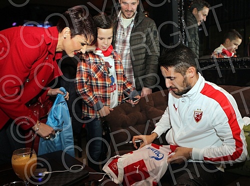 Druzenje prvotimaca Fudbalskog kluba Crvena zvezda Hugo Oliveira (Hugo Filipe Oliveira) i Luis Ibanjez (Luis Ezequiel Ibanez) sa navijacima u centru Beograda.