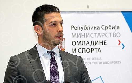 Sastanak predstavnika nacionalnih saveza sa Vanjom Udovicicem - mnistrom omladine i sporta povodom novog zakona o sportu drzana u sali skupstine Stari grad.