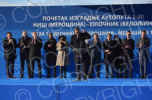 The President of the Republic of Serbia, Aleksandar Vucic, attended the ceremony marking the beginning of works on the construction of the highway E-80 Nis (Merosina) - Plocnik (Beloljin), phase 1, section Merosina-Merosina 1.