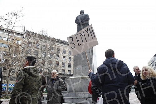 Supporters of the Serbian People's Party in front of the Kombank Hall, where the solemn session of the Main Board of the Serbian People's Party is being held. Pristalice Srpske narodne partije ispred Kombank dvorane gde se odrzava svecane sednica G