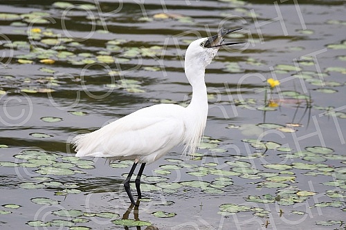 The white heron eats fish. Bela caplja jede ribu.