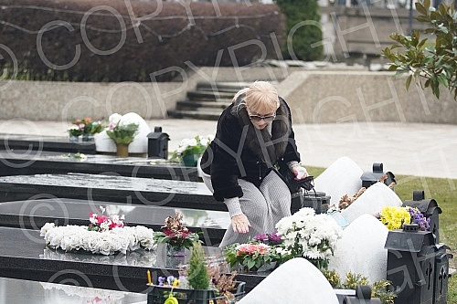 Gordana Saulic at the grave of Saban Saulic in the Alley of Merited Citizens at the New Cemetery.