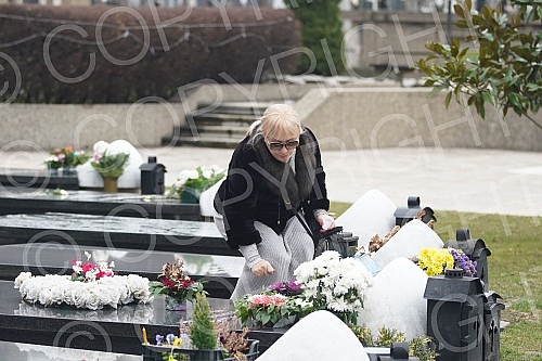 Gordana Saulic at the grave of Saban Saulic in the Alley of Merited Citizens at the New Cemetery.