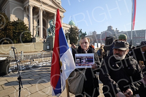 Pristalice Privremene skupstine naroda dostojnog Srbije okupile su se ispred zgrade Narodne skupstine.