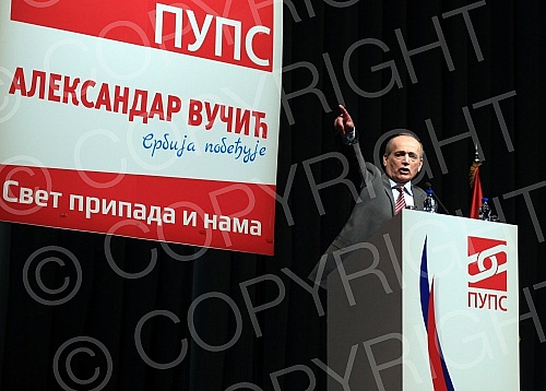 Preelection assembly of the Party of United Pensioners of Serbia (PUPS) held in the Sava Center. Predizborni skup Partije ujedinjenih penzionera Srbije (PUPS) odrzan u Sava centru.