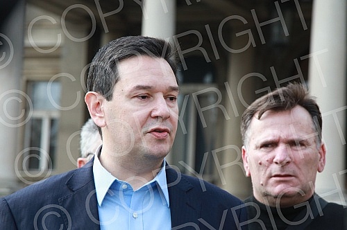 Nemanja Sarovic, leader of the Faith, Love, Hope movement, brought a cake for Goran Vesic for his birthday, which presented symbols of Vesic's leadership of Belgrade - a yellow excavator, demolition in Herzegovina, destruction of institutions, destru