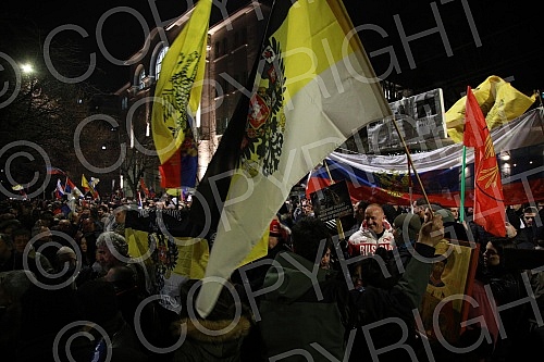 A rally in support of Russia called "Serbs for Russians" was held in front of the monument to Tsar Nikolai II Romanov, and those present then walked to the Embassy of the Russian Federation. Ispred spomenika Caru Nikolaju II Romanovu odrzan je skup