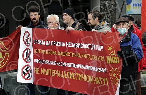 The New Communist Party of Yugoslavia held a rally in support of the Donetsk and Luhansk People's Republics, which have been under aggression by the Kiev fascist junta in Knez Mihailova Street for eight years.
