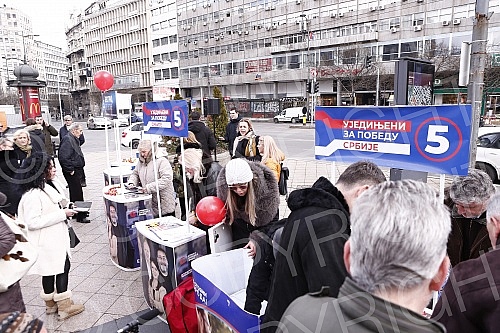 At the Terazije Fountain, representatives of the "United for the Victory of Serbia" coalition talked to citizens and handed out flowers to women on the occasion of Women's Day.