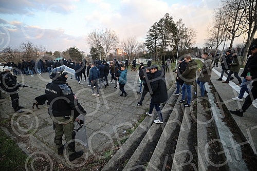 Fans of the Fejenodra football club, which will play the first game of the eighth finals of the League of Conferences against FC Partizan at 6:45 pm at the stadium in Humska, went to the stadium from the Republic Square with police escort.