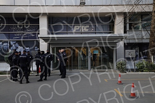 In front of the RTS building, where members of the organization Worthy of Serbia were earlier today, expressing alleged dissatisfaction with the work of RTS, forcibly entered the building of that media house in Takovska Street, there are police, but