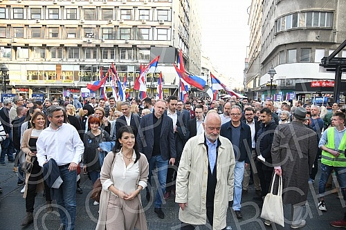 The Coalition United for the Victory of Serbia and Belgrade organized a parade with Knez Mihailov from the Palace of Albania to the City Library, where the citizens and the media were addressed by the entire people of the coalition. Koalicija Ujedin