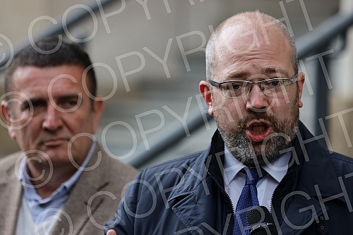 The Ajmo ljudi coalition organized a press conference in front of the Administrative Court on the occasion of the violation of the law by the GIK, which did not decide on the complaints within the legal deadline. Koalicija Ajmo ljudi je organizovala