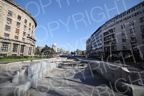 Spring cleaning of the fountain on Nikola Pasic Square. Prolecno sredjivanje fontane na Trgu Nikole Pasica.
