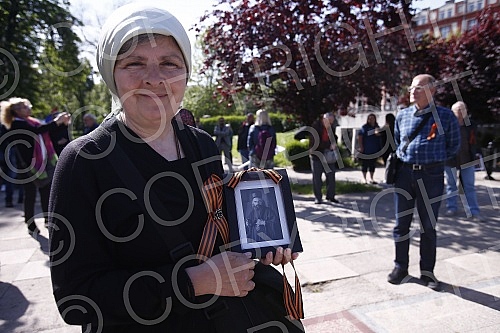 Participants in the Immortal Regiment event organized by the Russian Embassy in Belgrade gathered at the monument to Vuk Karadzic, and then walked to the Cemetery of the Liberators of Belgrade.
