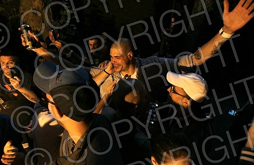 Squad of KK Crvena zvezda celebrate trophy at Kalemegdan.