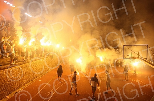 Squad of KK Crvena zvezda celebrate trophy at Kalemegdan.