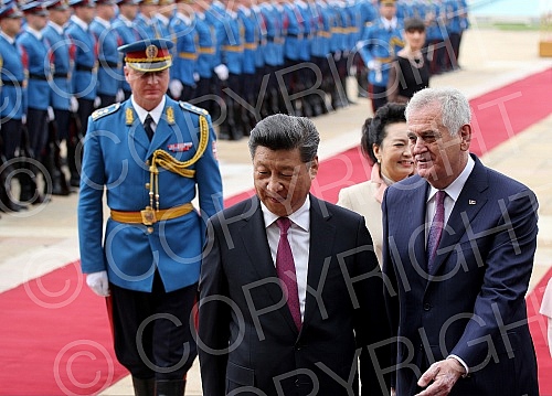 Drugi dan posete predsednika Kine Si Djinping nastavio se svecanim docekom ispred Palate Srbija.