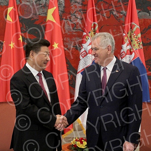 Drugi dan posete predsednika Kine Si Djinping nastavio se svecanim docekom ispred Palate Srbija.