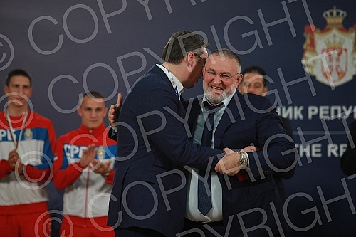 The President of the Republic of Serbia, Aleksandar Vucic, received the winners of gold medals at the European Boxing Championships, Vahid Abasov and Artyom Ageyev, as well as members of the delegation of the Boxing Federation of Serbia and the Olymp