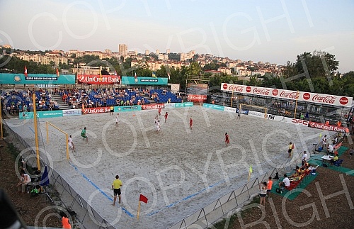 Utakmica cetvrtfinala Evropskog kupa u fudbalu na pesku izmedju Srbije i Madjarske.