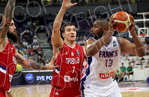 Prijateljska kosarkaska utakmica izmedju nacionalnih timova Srbije i Francuske.