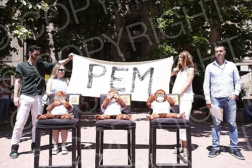 The Kreni-promeni movement and the Association for the Protection of Constitutionality and Legality organized a performance and a press conference in front of REM on the occasion of petitions to take away the frequency from Happy and Pink televisions
