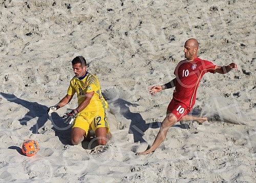 Utakmica Evropskog kupa u fudbalu na pesku izmedju Srbije i Spanije.