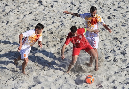 Euro Beach Soccer Cup 2016 match between Serbia and Spain. Utakmica Evropskog kupa u fudbalu na pesku izmedju Srbije i Spanije.