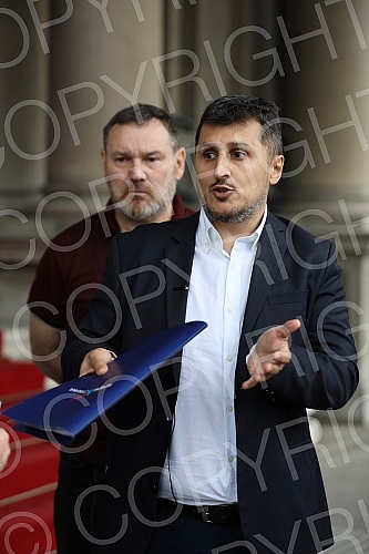 Milos Pavlovic, head of the People's Party's committee group, who will appeal to the Belgrade High Court to annul illegal decisions on the election of mayors, deputy mayors and members of the City Council, held a press conference in front of the Belg