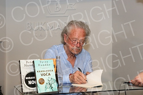 Nobel Laureate Peter Handke, who during a short visit to Belgrade, socialized with readers in the Delfi SKC bookstore and signed his books. Nobelovac Peter Handke, koji je u kratkoj poseti Beogradu druzio se sa citaocima u knjizari Delfi SKC i potpi