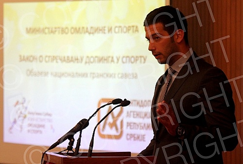 Sastanak u Skupstini grada Beograda Vanje Udovicica, ministra omladine i sporta Republike Srbije i Antidoping Agencije Srbije sa predstavnicima granskih saveza kako bi ih upoznali sa njihovim obavezama koje proisticu iz novog Zakona o sprecavanju dop