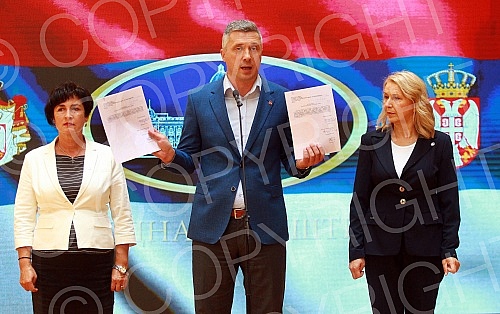 Clanovi Poslanicke grupe SRPSKI POKRET DVERI PATRIOTSKI BLOK odrzali su konferenciju za medije u centr