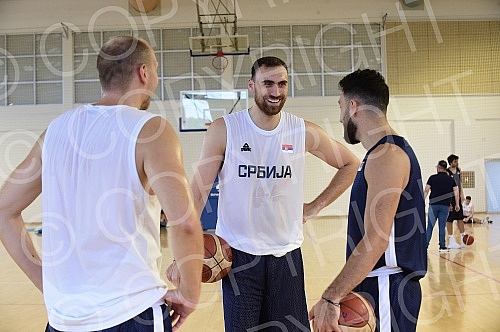 The open part of the training of the men's senior basketball team of Serbia at the FSS Sports Center in Stara Pazova. Otvoreni deo treninga muske seniorske kosarkaske reprezentacije Srbije u Sportskom centru FSS u Staroj Pazovi.